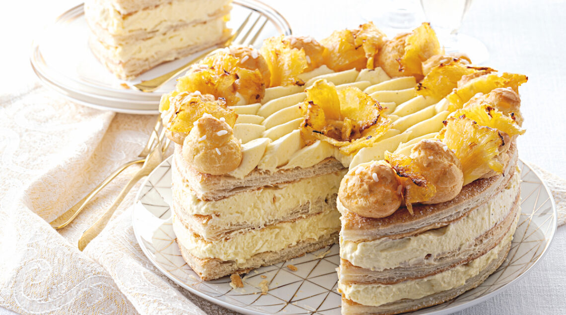 Un dolce raffinato, scenografico, elegante, ideale per una ricorrenza speciale. Preparato con pasta sfoglia e profumato alla vaniglia