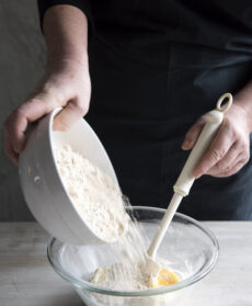 Aggiungete un uovo, sbattuto a parte, la farina di castagne setacciata e impastate fino a ottenere un composto omogeneo. Avvolgetelo in un foglio di pellicola per alimenti e lasciatelo riposare in frigo per 30 minuti. Quindi stendete la pasta sul piano di lavoro in una sfoglia dello spessore di 3-4 mm, trasferitela in uno stampo da crostata del diametro di 20 cm e cuocetela in bianco in forno caldo a 180° per 30 minuti.