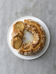 3) Fai lo sciroppo e servi il berlingozzo. Spremete le arance, filtrate il succo con un colino e versatelo in un pentolino. Unite lo zucchero rimasto, portate a ebollizione e cuocete lo sciroppo a fiamma bassa per 4-5 minuti.