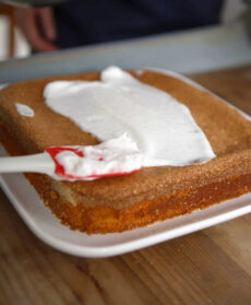 2) Copri la torta con l'alluminio, per evitare che la superficie diventi troppo scura, poi lascia cuocere per altri 10 minuti. Trascorso questo tempo sfornala e lasciala raffreddare su di una gratella da pasticcere. Monta gli ultimi albumi, lavorandoli a crema con lo zucchero a velo.