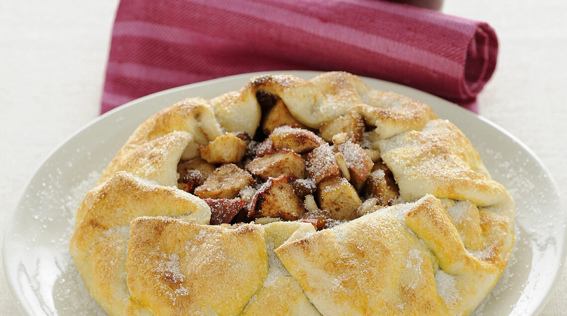 1) Inizia a realizzare la base della ricetta del cartoccio alla frutta mettendo la farina a fontana sul piano di lavoro, sistemando al centro 40 grammi di burro a fiocchetti, lo zucchero a velo e un pizzico di sale.