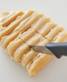 Completa la casetta. In uno dei 2 muri, ritagliaun rettangolo al centro del lato opposto, ricavando la 'porta' della casetta, come nella foto. Assembla i 2 muri laterali (da 5 savoiardi) con quello anteriore (da 8 savoiardi, con la porta) e quello posteriore (da 8) con crema al burro.