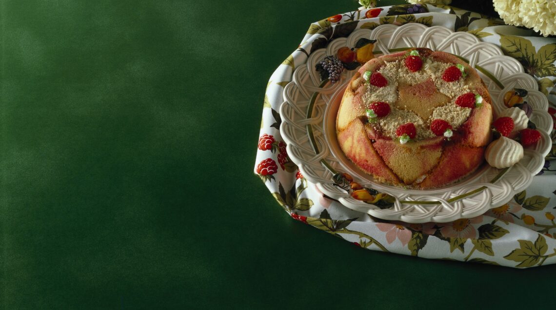 1) In una terrina monta 7 tuorli e 80 grammi di zucchero con l’aiuto della frusta elettrica. Il composto deve diventare gonfio e spumoso. Monta a neve gli albumi con 50 grammi di zucchero e incorporali ai tuorli, poi aggiungi fecola e farina setacciate. Trasferisci l’impasto della charlotte ai lamponi in una teglia di dimensioni 40x50 foderata di carta da forno, e cuocilo in forno preriscaldato a 220° per 6-8 minuti.