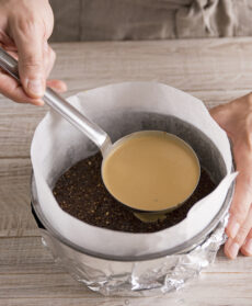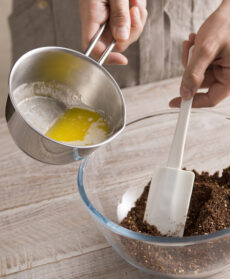 Spezzettate i biscotti, trasferiteli nel mixer, frullateli e versate a filo il burro sciolto su fiamma bassissima. Frullate ancora per qualche secondo fino a ottenere un composto omogeneo.
