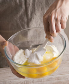 Unitelo all'impasto e mescolate con una spatola cercando di non creare bolle d'aria.