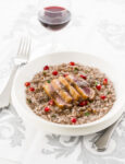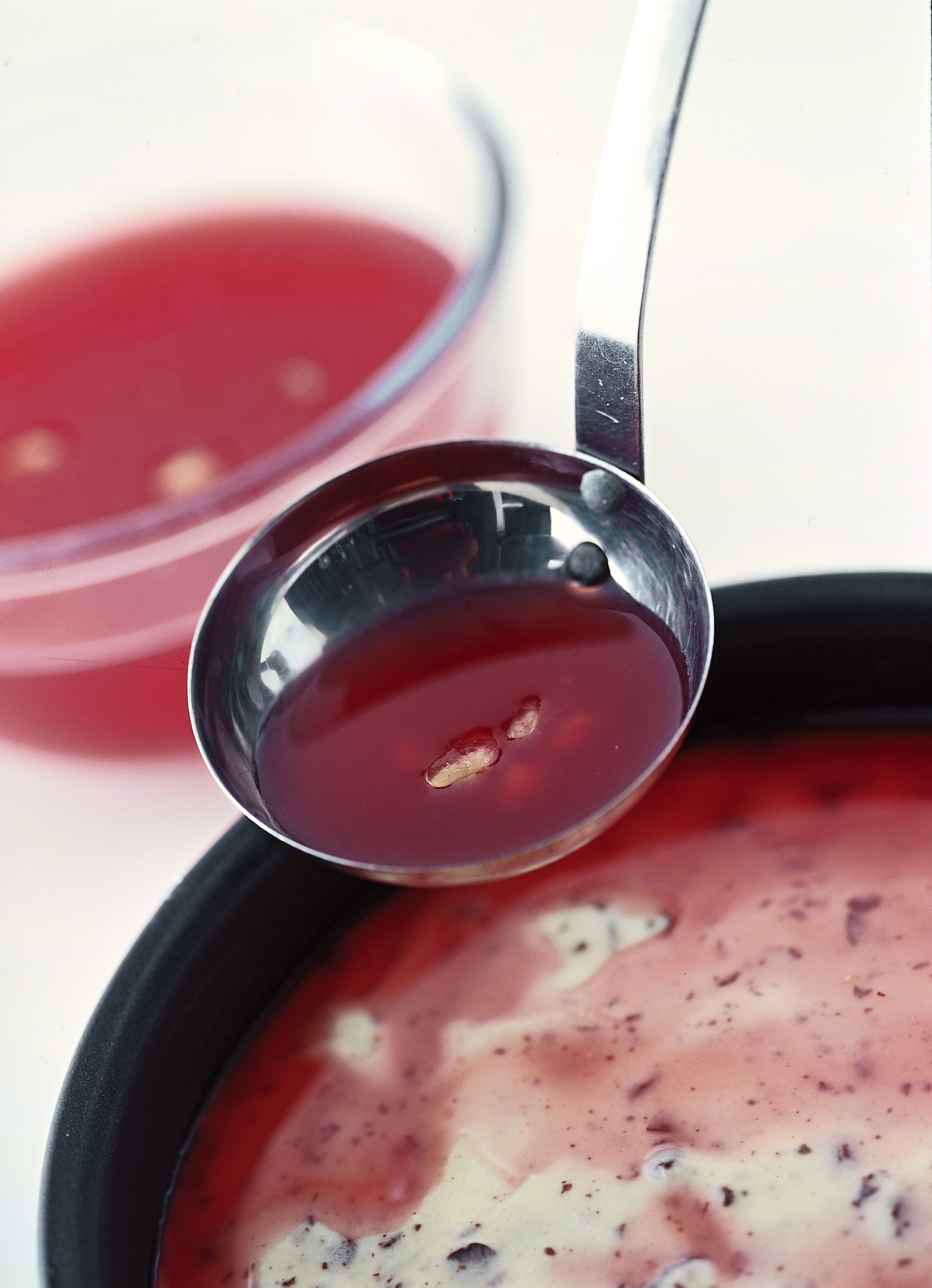 3) Sgrana le melagrane e passane 250 g al mixer insieme allo zucchero a velo; filtra il succo ricavato. Aggiungi la gelatina rimanente, strizzala, a metà del succo, scioglila a fuoco basso e uniscila al succo di melagrana. Fallo intiepidire, aggiungi i chicchi rimasti e versa il tutto sopra la crema di ricotta. Sforma il dolce e tienilo in frigo fino al momento del servizio.