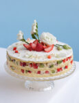 4) Servi. Guarnisci la cheesecake allo yogurt e frutta con alcune foglioline di menta o melissa e servi.