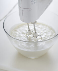2) Fai la crema. Monta con una frusta elettrica o passa al mixer il formaggio, gli albumi, lo zucchero e lo yogurt. Versa il composto nello stampo, sulla base preparata con le fette biscottate frullate e trasferisci in forno già caldo a 170°C per circa 45 minuti. Infine togli dal forno e lascia raffreddare a temperatura ambiente. Quando sarà fredda, metti la torta in frigo per una notte. Apri lo stampo e trasferisci il cheescake su un piatto da portata aiutandoti con la carta da forno.