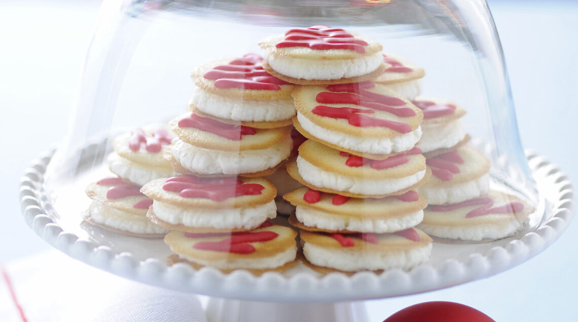 5) Estrai le cialdine dal forno, decorale con la glassa e spalmale di panna, unendole 2 a 2. Gusta subito le tue cialdine alla panna.
