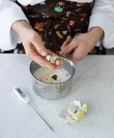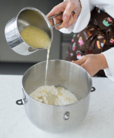 Scaldate il latte a 37,5° in un pentolino con il burro, il miele, lo zucchero e la vaniglia e scioglietevi il lievito sbriciolato.
