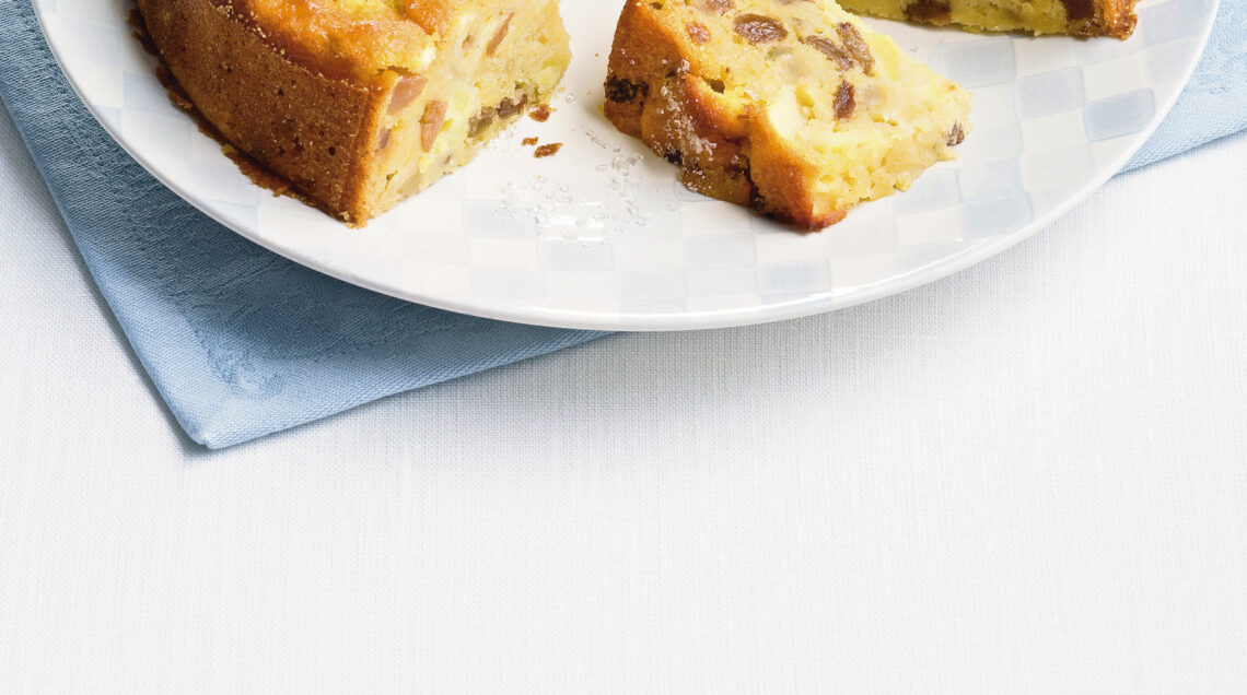Tanta frutta, con mele, uvetta e canditi, rendono questa classica ciambella veneta un dessert sorprendente ed elegante