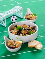 1) La ricetta del clafoutis tiepido alle mandorle è una gustosa variante di quello della tradizione. Monda le ciliegie, elimina anche il nocciolo e poi adagiale in una pirofila ovale lunga 25 centimetri, che hai provveduto ad imburrare.