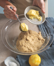 Lavorate l'impasto finché sarà liscio e omogeneo unendo la scorza di limone ed il burro a poco a poco. Infine incorporate il sale.