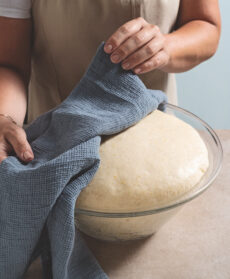 Formate una palla, mettetela in un'ampia ciotola e lasciatela riposare fino al triplicarsi del volume (3-4 ore) coperta con un panno.