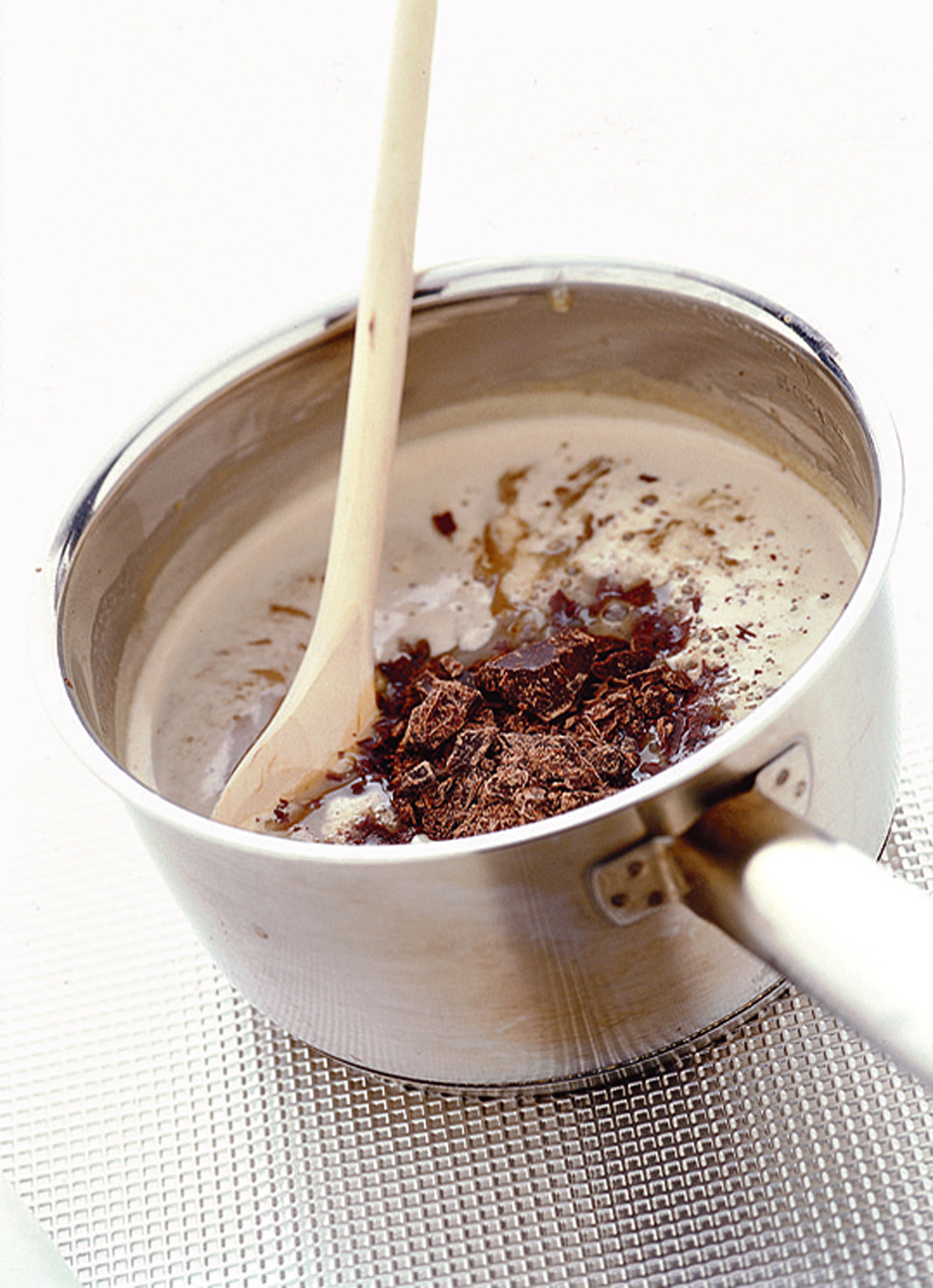 1) Realizza la ricetta della delizia al cioccolato versando in una casseruola il caffè, il rum e la panna. Fai scaldare il liquido poi aggiungi lo zucchero semolato e 120 g di burro. Lasciali sciogliere a fiamma bassa, poi, lontano dal fuoco, aggiungi il cioccolato che avrai tritato finemente. Mescola bene gli ingredienti fino a ottenere una crema densa e omogenea.
