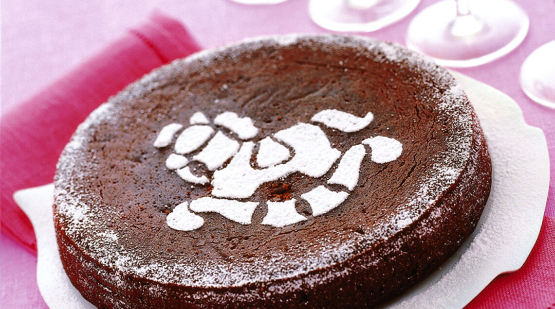 1) Fai cuocere la delizia al cioccolato in forno già caldo a 180° per circa 50 minuti. A cottura ultimata, sforna la torta e lasciala raffreddare per circa mezz’ora mantenendola all’interno dello stampo. Trascorso questo tempo, sformala e capovolgila.