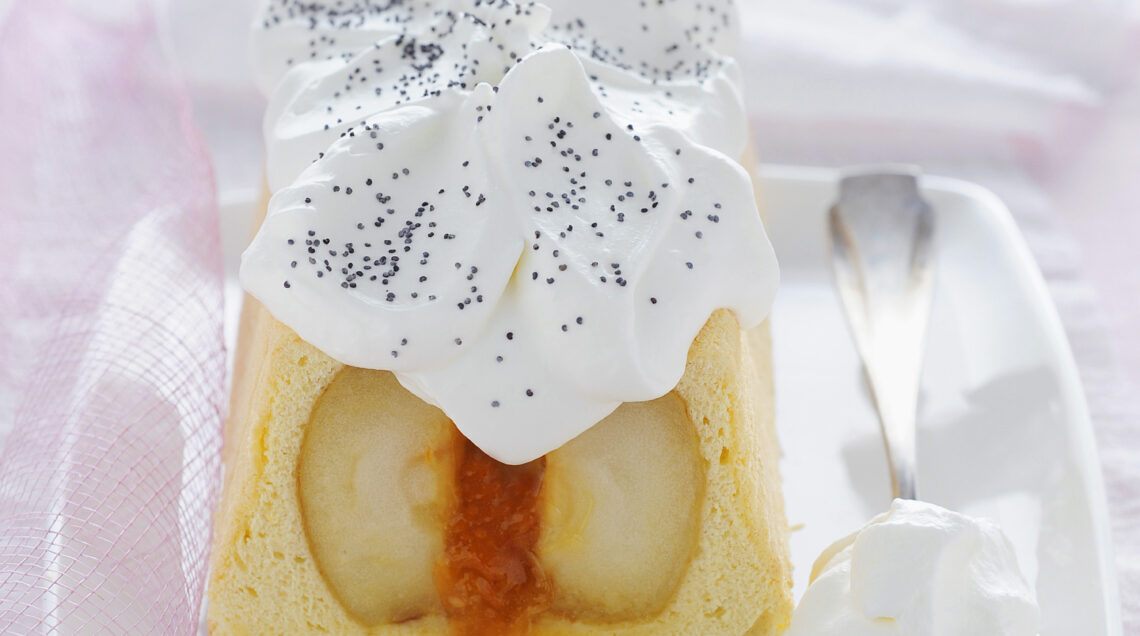 3) Riempi i fori praticati nelle mele con un cucchiaio di marmellata; monta la panna con lo zucchero rimasto e disponila a cucchiaiate sul dolce. Prima di servire, spolverizza la superficie della torta di mele con i semi di papavero.