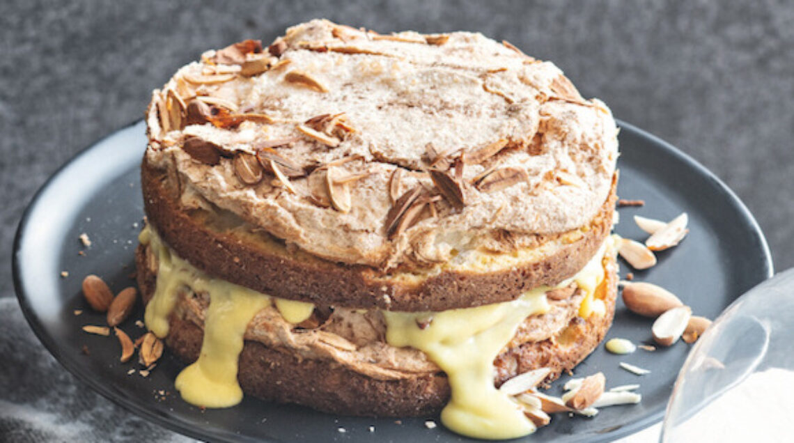 Un dolce a strati, farcito con golosa crema e guarnito con mandorle a lamelle. Per rendere unica una merenda o un'occasione speciale