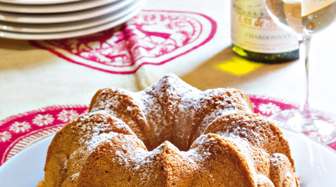3) Imburrate generosamente uno stampo per ciambelle di 18 cm di diametro e bordi alti, cospargetelo con un po’ di zucchero semolato e riempitelo con l’impasto. Cuocete in forno caldo per 45 minuti a 155°. Lasciate intiepidire e spolverizzate con un po’ di zucchero a velo.