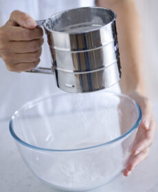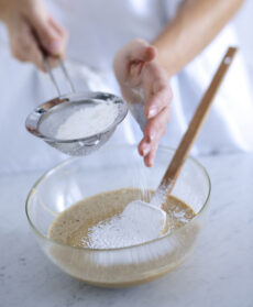 Mentre la ghirlanda di meringa cuoce in forno, monta le uova con lo zucchero e il caffè, aggiungi l’amido di mais e amalgama alla perfezione il tutto.