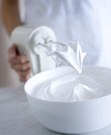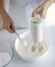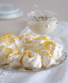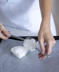 Cuoci la meringa al cardamomo in forno a 120° per 2 ore, fino a quando essa non si presenta asciutta.