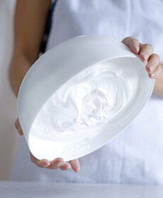 Prendi un foglio di carta da forno e disegnaci un disco di 22 centimetri di diametro, adagialo su di una teglia e versa su di esso la meringa a cucchiaiate, in modo da formare una ghirlanda.