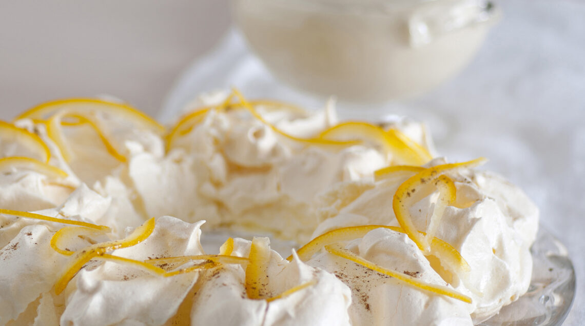 Versala in una ciotola e mettila a raffreddare, sistemando su di essa un foglio di pellicola per evitare che si formi la crosticina superficiale. Sforna la meringa e decorala con la scorza d'arancia tagliata a julienne.