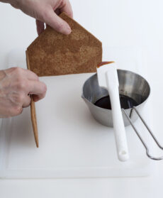 Per preparare il caramello, metti in una padella lo zucchero semolato con il succo del limone e cuoci a fuoco basso fino al formarsi di un caramello dorato. Intingi i bordi delle varie parti della casa e assemblale: agisci velocemente perché il caramello si rapprende in fretta (nel caso, potete riscaldarlo a fiamma bassissima).