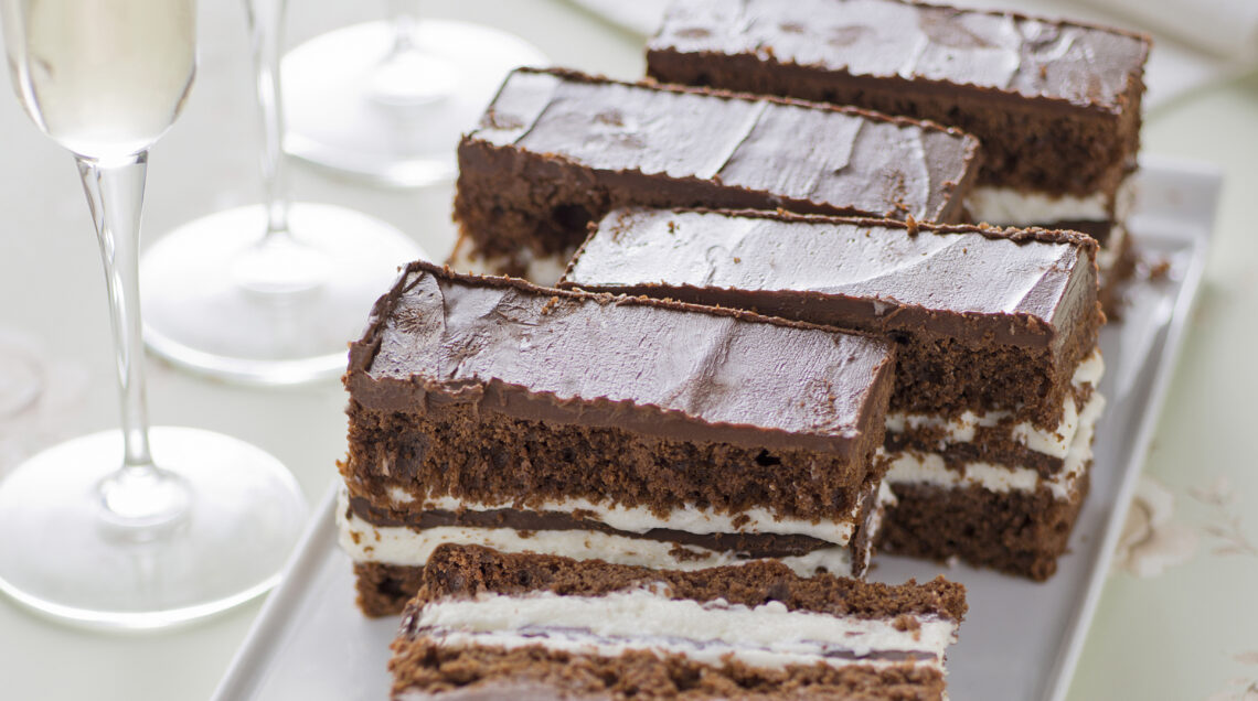 Un dolce a strati, ricco di panna montata che esalta l'inconfondibile sapore di cioccolato del pan di Spagna e della copertura