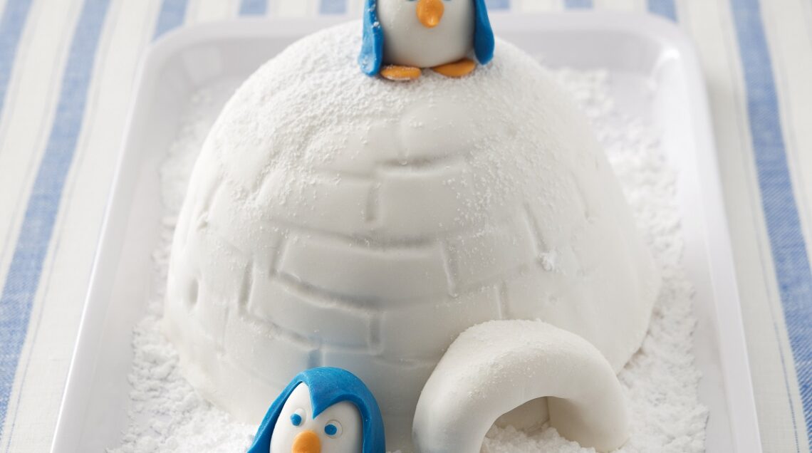 8) Decorate la superficie con il dorso di un coltello, completate con i pinguini e spolverizzate di zucchero a velo.