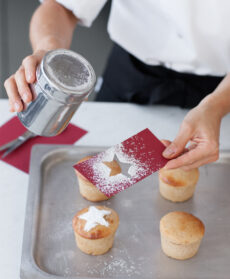 Sformateli quando sono tiepidi, ricopriteli con un cartoncino in cui avrete ritagliato una sagoma a forma di stella, cospargeteli con abbondante zucchero a velo e serviteli. Se vi piace, potete regalare i pandorini o usarli come segnaposto: inseriteli in sacchettini trasparenti, chiudeteli con un fiocchetto rosso e, con una mollettina, allegate un cartoncino su cui scrivere gli auguri di Buon Natale o il nome dei commensali. Si mantengono fragranti fino a 10 giorni.