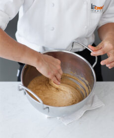 Sgonfiate l'impasto lavorandolo con le mani ben unte di burro, oppure lavoratelo nell'impastatrice con le fruste alla velocità più bassa.