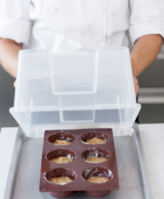 Sbattete un paio di volte il fondo degli stampini sul tavolo, per compattare l'impasto, eliminando eventuali bolle d'aria. Coprite gli stampini con un contenitore non a contatto e lasciate lievitare in forno scaldato a 50° e spento finché l'impasto avrà raggiunto il bordo degli stampini. Cuocete in forno caldo a 180° per 5 minuti circa o finché i pandorini i saranno gonfi e dorati (se usate lo stampo monoporzione, calcolate 20 minuti circa).