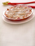 3) Tira 2 terzi della frolla e foderaci uno stampo di 18 cm di diametro e di 5 cm di altezza imburrato, spolverizzalo con gli amaretti e riempilo con la crema.