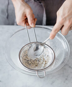 Imburrate l'apposito stampo e foderatelo con carta forno, in modo che il dolce non si attacchi alle pareti e al fondo, versando l'impasto fino a 2/3 della sua capacità in modo che in cottura, lievitando, non sbordi. Setacciate la farina e, se volete, aggiungete un po' di miele che trattiene umidità e regala morbidezza. Controllate la temperatura del forno che deve rimanere costante.