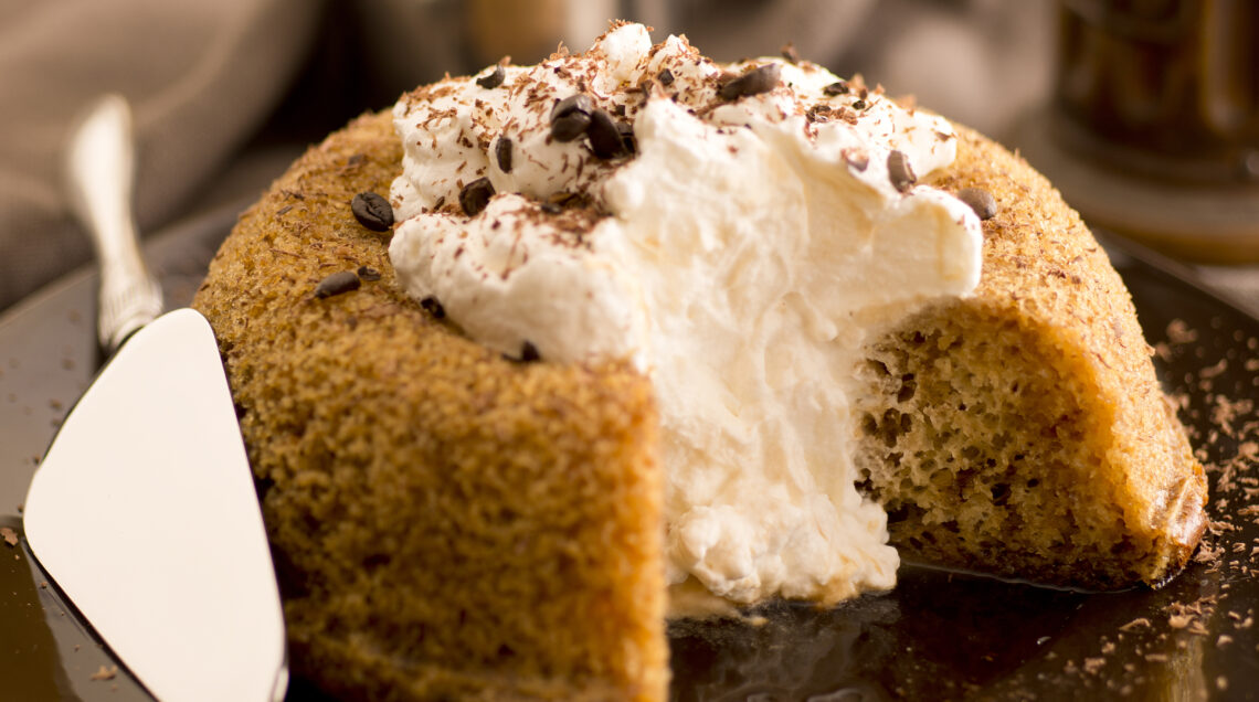 L'impasto dopo la lunga lievitazione regala un dolce alto e soffice, inzuppato di sciroppo di caffè e cannella. Basta qualche ciuffo di panna e scaglie di cioccolato per rendere il dolce indimenticabile