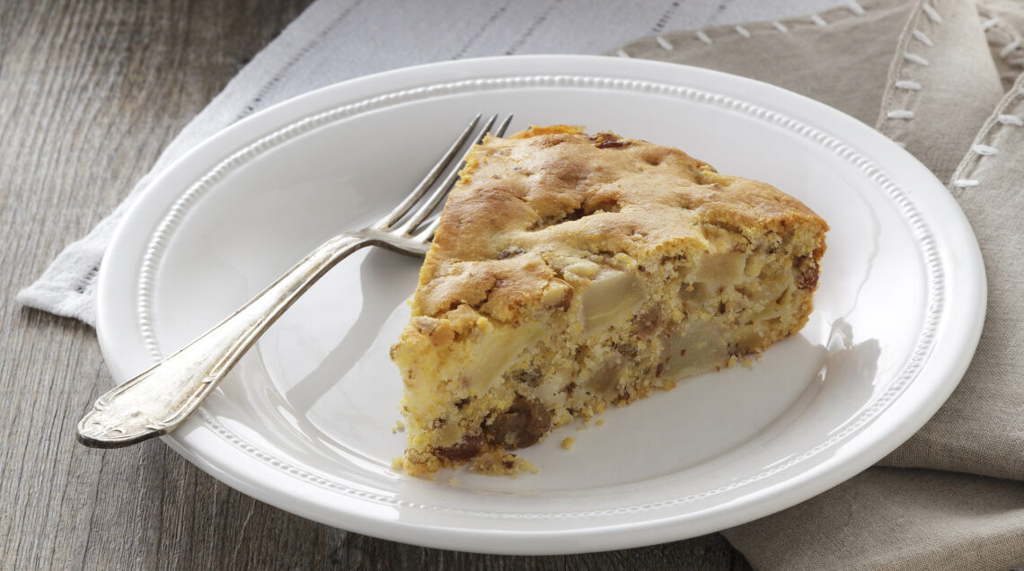 Appartiene alla tradizione dolciaria bergamasca questa torta soffice e delicata. Preparata con farina di mais, frutta fresca e secca e grappa, è una torta golosa fin dalla prima colazione