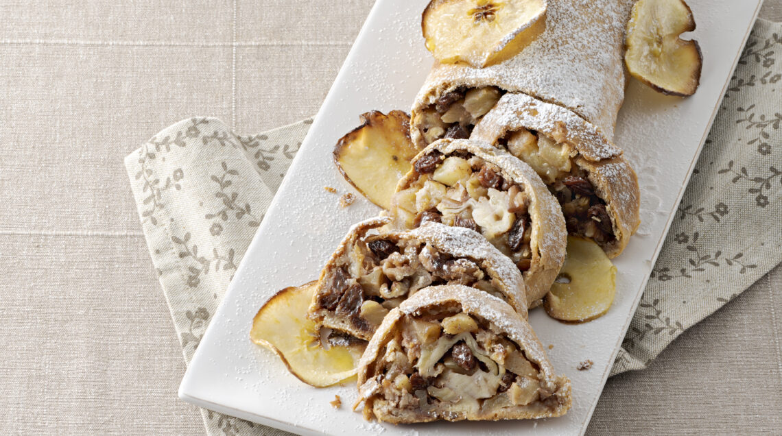 Nella nostra ricetta il ripieno dello strudel è fatto con le mele Golden, dal sapore zuccherino e amabile e dalla polpa soda ma cedevole. Nella ricetta originale è preferita la Renetta, una mela non solo dolce, ma anche profumata. Se scegliete di preparare questo dolce con altri tipi di frutta scegliete frutta soda se prima la ripassate in padella o aggiungetela appena scottata o cruda per frutta più morbida, come per esempio le fragole o i frutti di bosco.