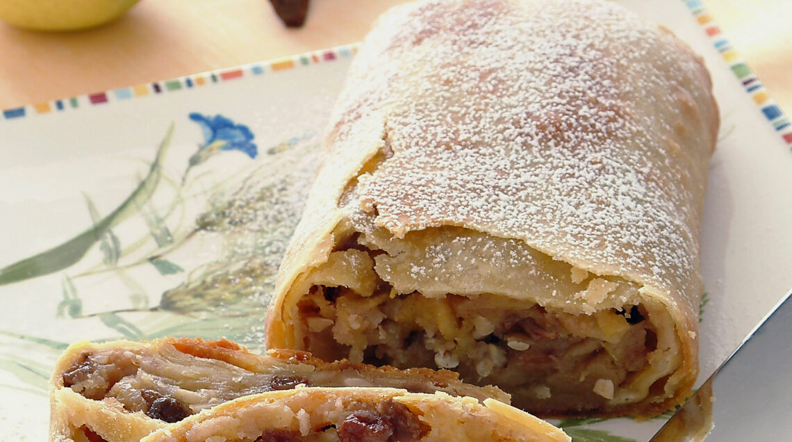 4) Per concludere lo strudel di sfoglia con uvetta e pinoli, spennella di burro la superficie della pasta sfoglia e inforna lo strudel a 180° per circa 1 ora. Trascorso questo, sforna il tuo strudel e servilo in tavola tiepido con una spolverata di zucchero a velo.