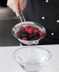 Per lavare i frutti di bosco senza rovinarli, poneteli in un colino e immergetelo in una ciotola di acqua fredda. Agitateli con la mano e sgocciolateli, sempre nel colino. Stendeteli ad asciugare su carta da cucina.
