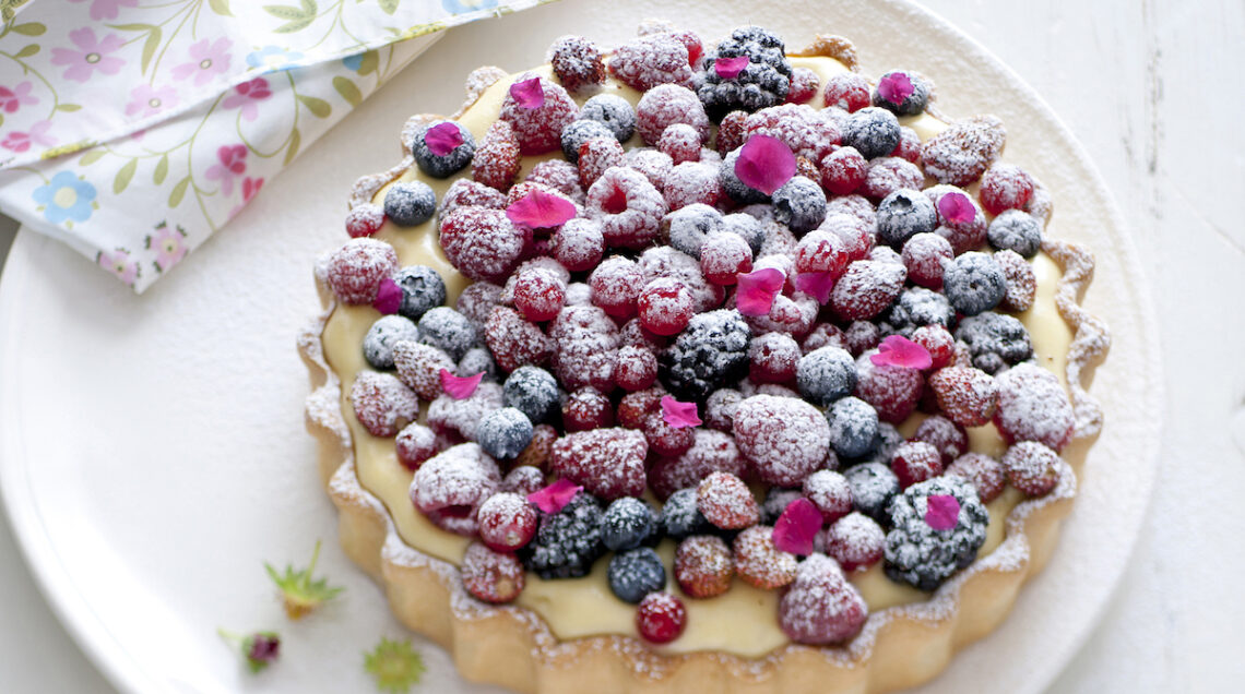 Alla fine dell'estate il bosco regala ancora more, lamponi, fragoline e ribes per dolci scenografici come quello qui proposto, ma buoni anche per arricchire biscotti, pasticcini, gelati. Se non li trovate freschi potete usare frutti di bosco surgelati oppure in sciroppo.