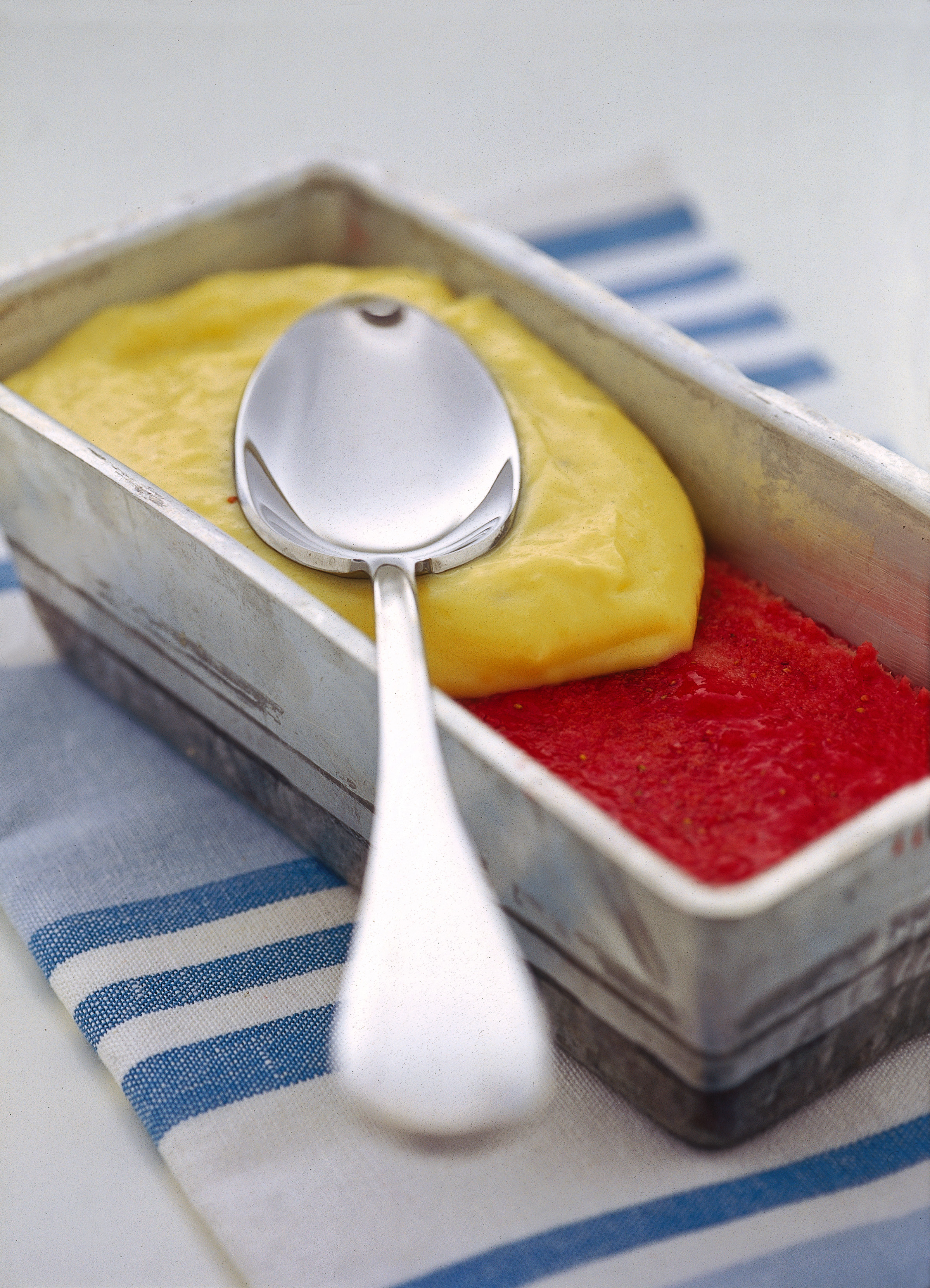 3) Versa la purea di fragole in uno stampo da plum-cake di 18 cm e lasciala rapprendere in freezer per 40 minuti.