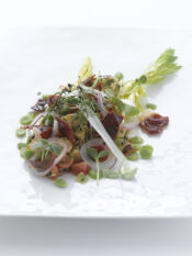 2) Riscaldate il forno statico a 180°C. Foderate uno stampo da 24 cm con della carta da forno bagnata e strizzata e versate il composto lavorato; livellate la superficie con una spatola, infornate e cuocete per 35 minuti.