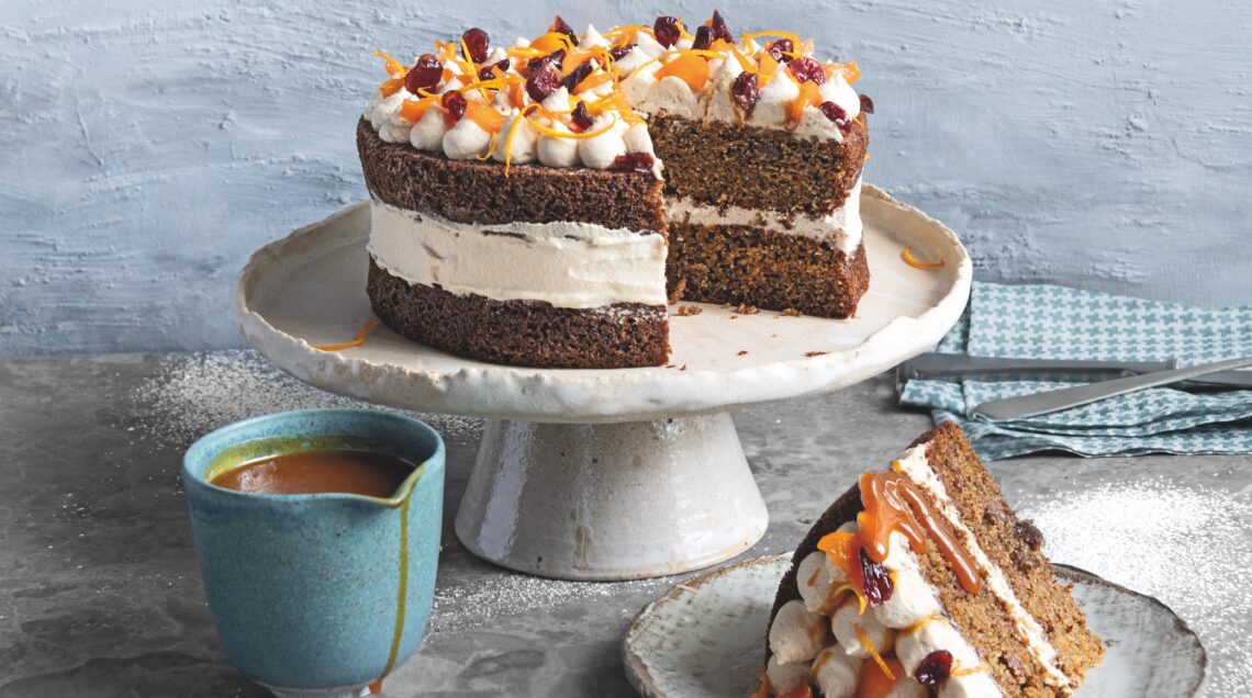 Doppia farina, di grano saraceno e mandorle, carote e succo d'arancia. Il dolce, farcito con crema di burro al formaggio, profuma di cannella