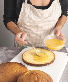 Dividete le torte a metà nel senso dello spessore, farcitele con la crema agli agrumi, ricomponetele e sovrapponetele; mettetele in frigo.