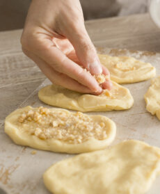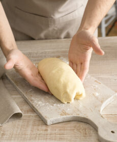 Sgonfiate leggermente la pasta e formate un rotolo di circa 8 cm di diametro.