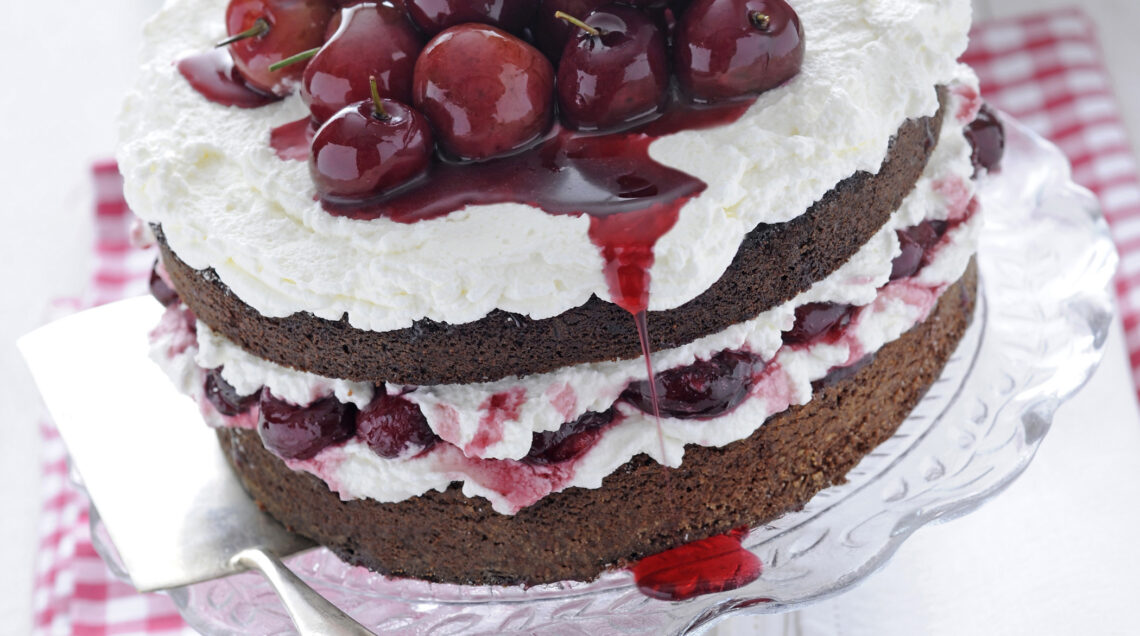 4) In una terrina monta la panna con lo zucchero a velo e spalmane metà sul primo, farcisci con le ciliegie snocciolate e un po' di sciroppo. Chiudi con il secondo disco e ricoprilo con la panna rimasta.