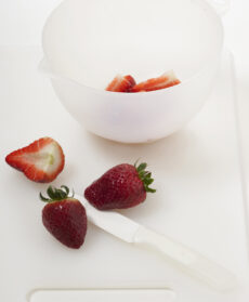 1) Prepara la frutta. Pulisci le fragole, lavandole velocemente, tamponale con carta da cucina, elimina i piccioli e dividile a spicchi, nel senso della lunghezza. Mettile in una ciotola con metà zucchero di canna e mescola.