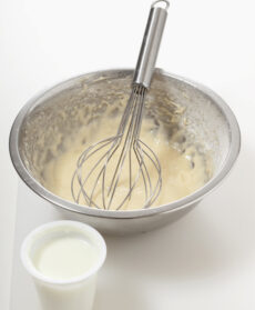 2) Fai la crema. Sbatti l'uovo con la scorza grattugiata del limone e lo sciroppo di agave; poi incorpora 6 cucchiai di olio a filo, continuando a sbattere. Incorpora la farina mescolata con il lievito, alternandola a cucchiaiate di yogurt, fino a esaurire gli ingredienti.