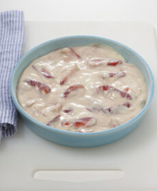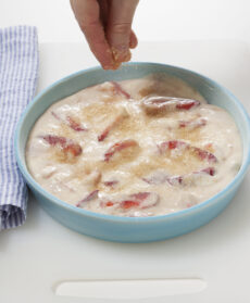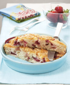 5) Servi. Togli la torta dal forno, lasciala raffreddare e servi la torta di fragole allo yogurt nello stesso recipiente di cottura.